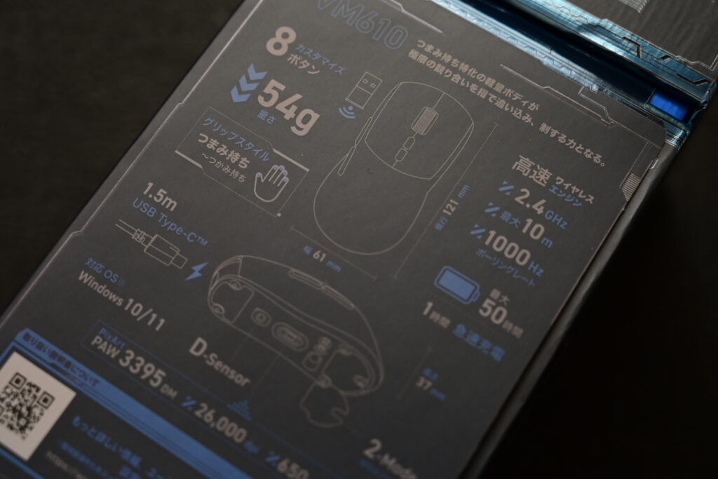 そんなわけで、デスクトップPC用に「超軽量」かつ「つまみ持ち」対応(=小さい手でも扱いやすい)のマウス(VM610)を購入しました。
