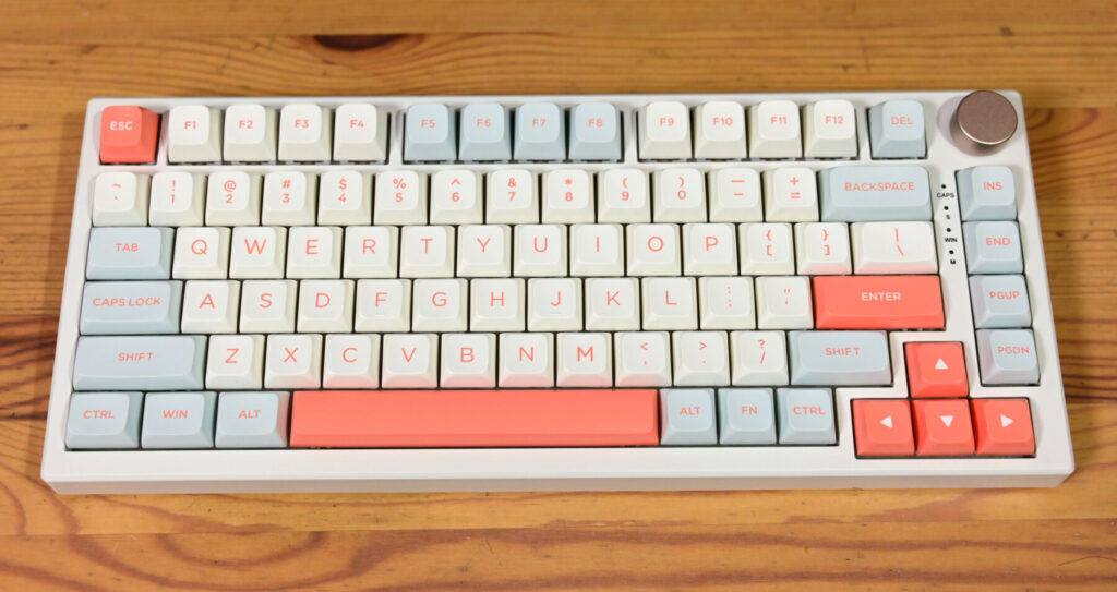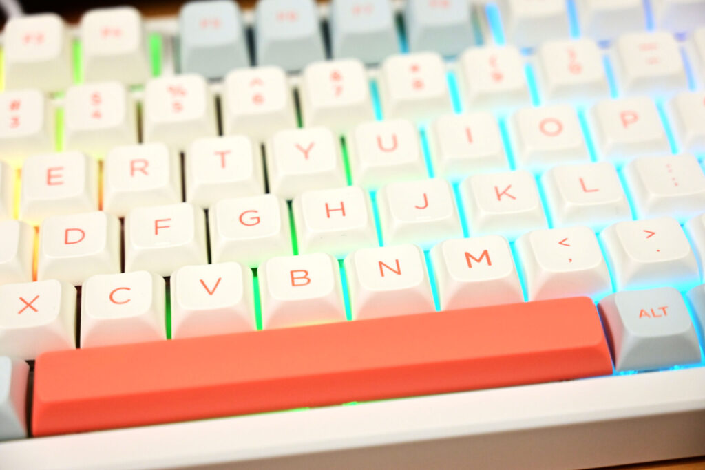 こちらは8000円ほどのキーボード。特徴としては「コトコトという打鍵感があり(=赤軸のスコスコしたタイプとは異なる)」ながら、メカニカルキーボードにありがちな「甲高い金属音がしない」点。このような特徴を感じられるのがKeychron Q1 と VGN N75(次点で Keychron KP8=少し打鍵感が軽い)でした。