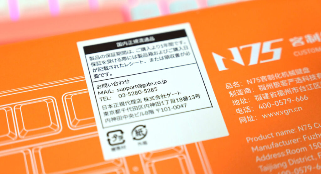 静音性を重視するとやはりメンブレンやパンタグラフ式が明らかに優れていますが、それを覆すほどいいと思ったキーボードがこちら。店頭で試打してみて1,2位を争う打鍵感だったこの VGN N75 です。