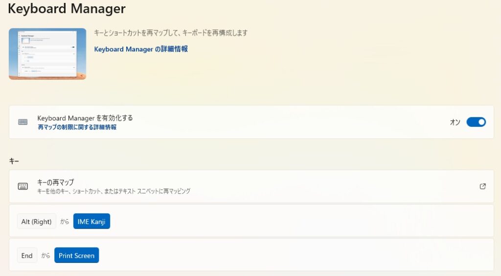 やり方は Microsoft Power Toys をインストールし、Keyboard Manager の中で以下のように設定すればOK。(※純正ソフトもありますが、中華系なので使わないように回避しました)