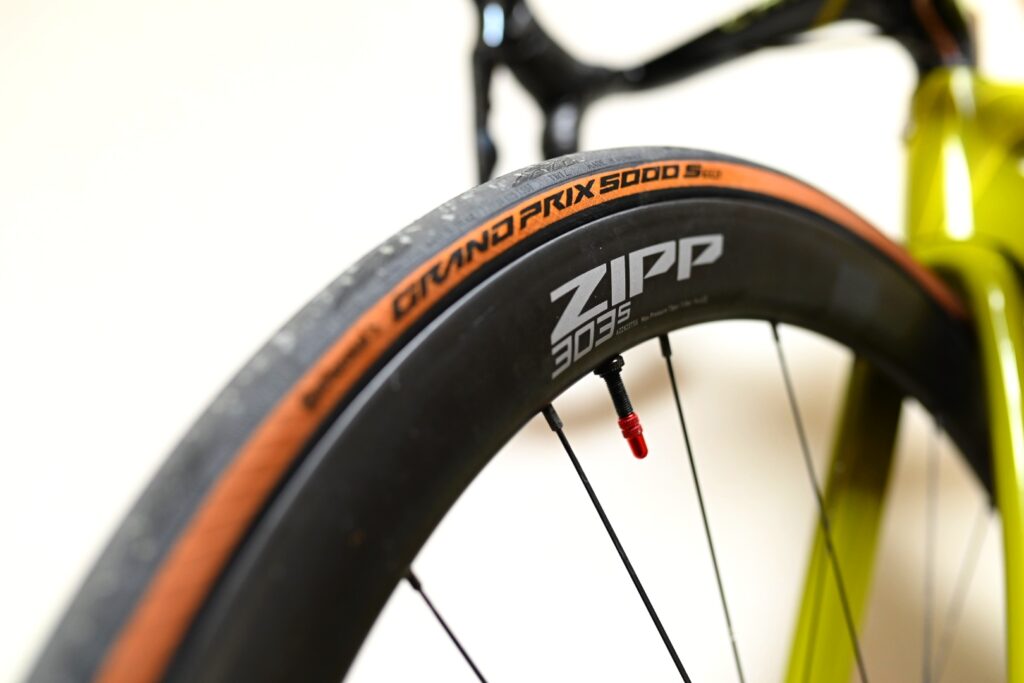 取り付けは特に難しい点はありません。合わせたのはZIPP303S、内幅23mmのフックレスリムです。※フロアポンプでビードを上げることはできませんでした。