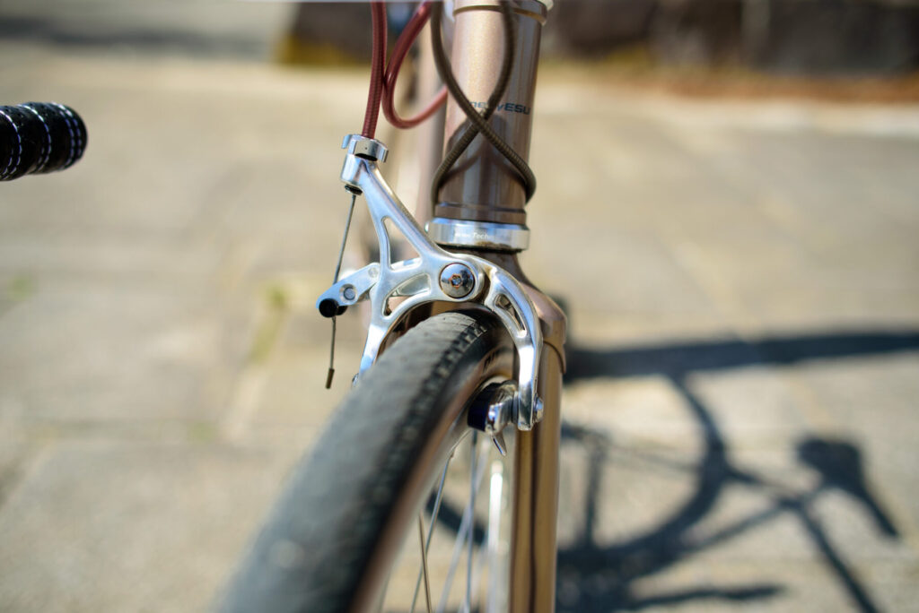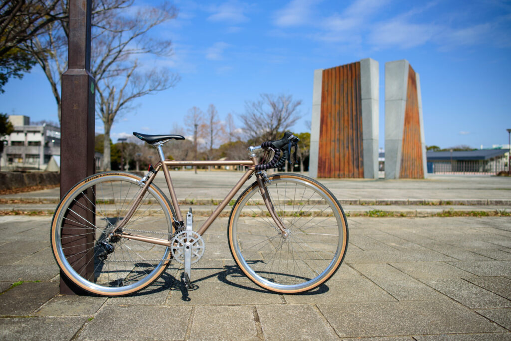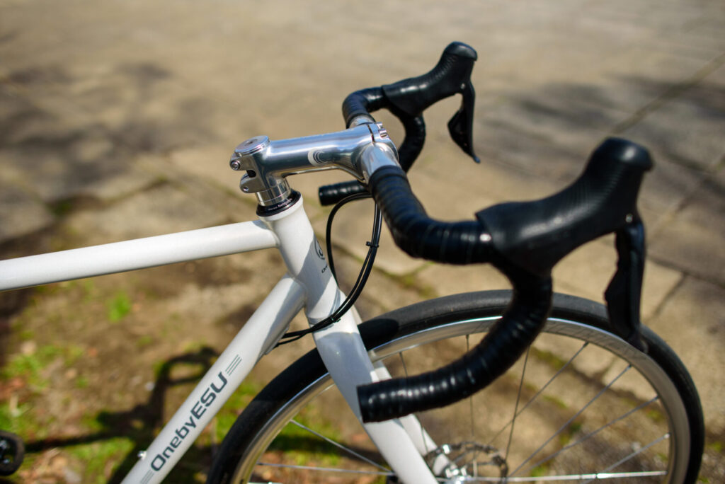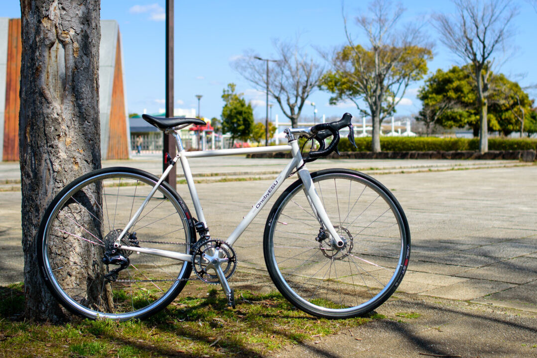 ワンバイエスさん営業がヘタだよなぁなんて思いながら(ワンバイエスのこういうとこ嫌いじゃない)、試乗していたのだけど、もしかしたら、手組ホイールを合わせた「由緒正しいクロモリ」を味わって欲しいと思って、こういうアセンブルにしているのかもしれない。