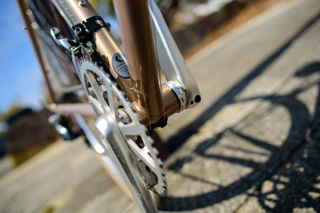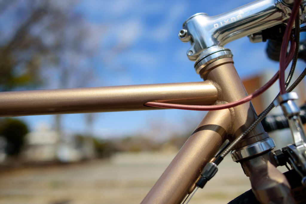 クロモリらしい落ち着いた重さもあって、惰性で進ませるといい感じ。