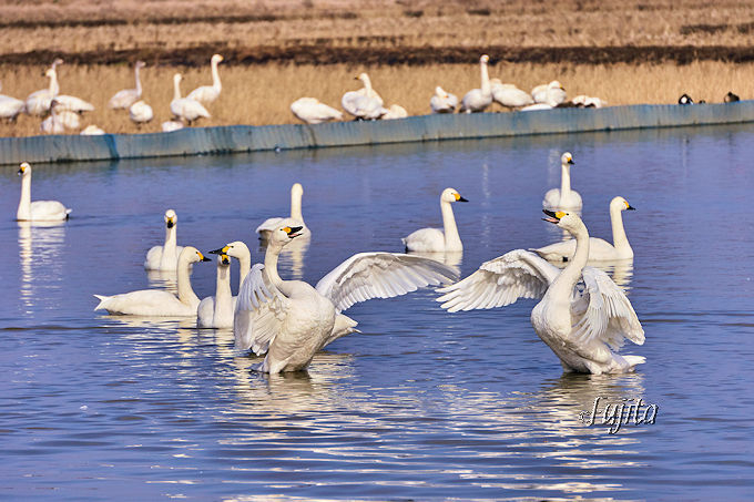 毎年、冬になると白鳥が何の変哲もない水田に飛来します。